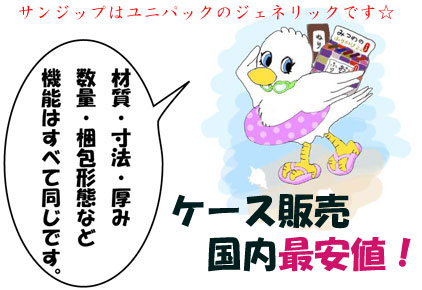 ユニパック をお使いのお客様はぜひ一度「サンジップ」をご使用ください!現在80μの製品をご使用の場合でも、「サンジップ」であれば40μの安価なもので事足りるかもしれません。そしてお客様の気が向けばで結構ですがぜひミツワでのご購入をご検討ください。よろしくお願いいたします☆ |